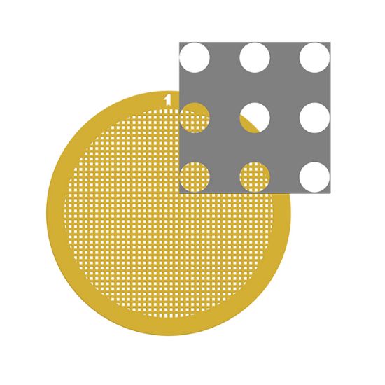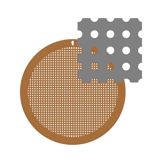 專(zhuān)利技術(shù)制造,超平的碳膜可使待觀察顆粒分散更均勻,為冰層厚度均勻打下良好的基礎(chǔ)。膜上的花樣孔采用深紫外光刻印制技術(shù),確保了孔大小的精確(精確至微米級(jí)別);同時(shí)確保了孔型的連續(xù)性,精細(xì)的制造技術(shù)完全消除了多于的碳和碳膜孔產(chǎn)生的邊角料。